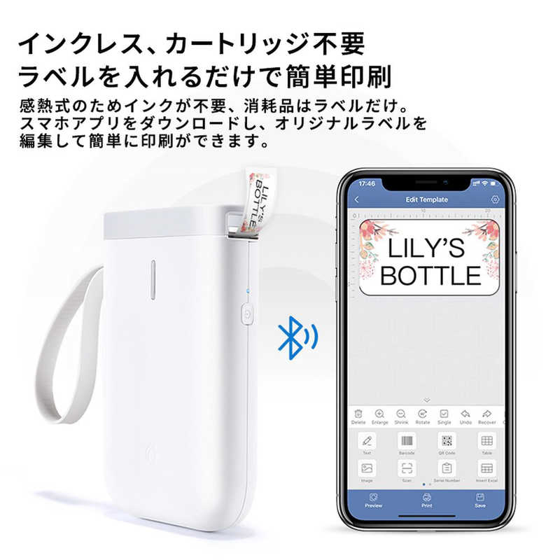 ラベルプリンター ラベルライター 本体 感熱式 スマホ対応 Bluetooth ラベルシール テープライター android iPhone