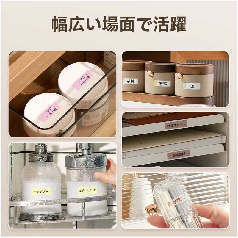 収納や名前付けをする一般家庭向け用途のラベル、店名シール、値札や告知を作成するカフェやショップ、ギフトラッピングなどお洒落なデザインやテープにこだわる方にオススメです。