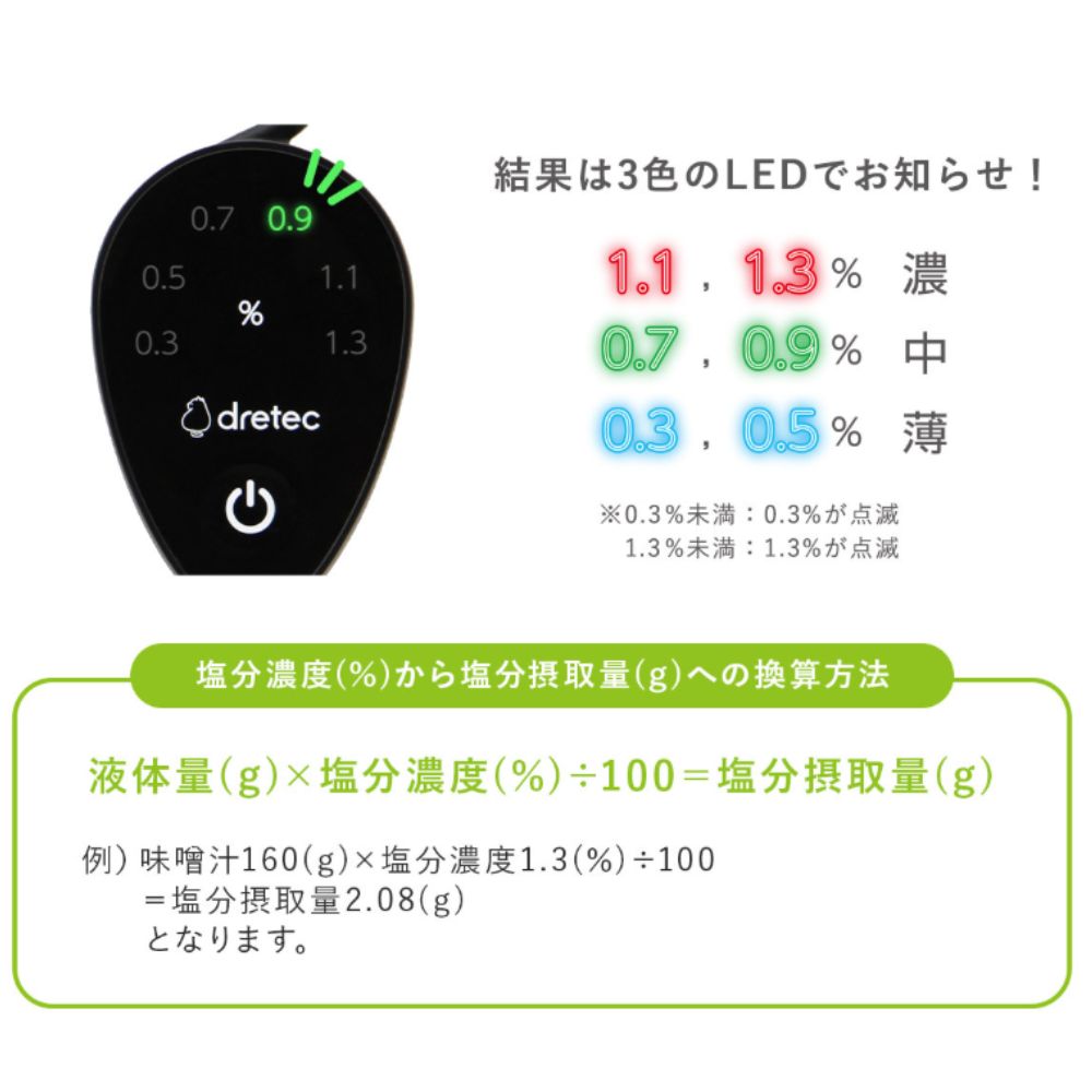 塩分計 塩分濃度計 塩分計測器 塩分測定 塩分チェック 塩分管理 塩分濃度 減塩 料理 調理 健康管理 味噌汁 ラーメン スープ 自宅 6段階LED表示