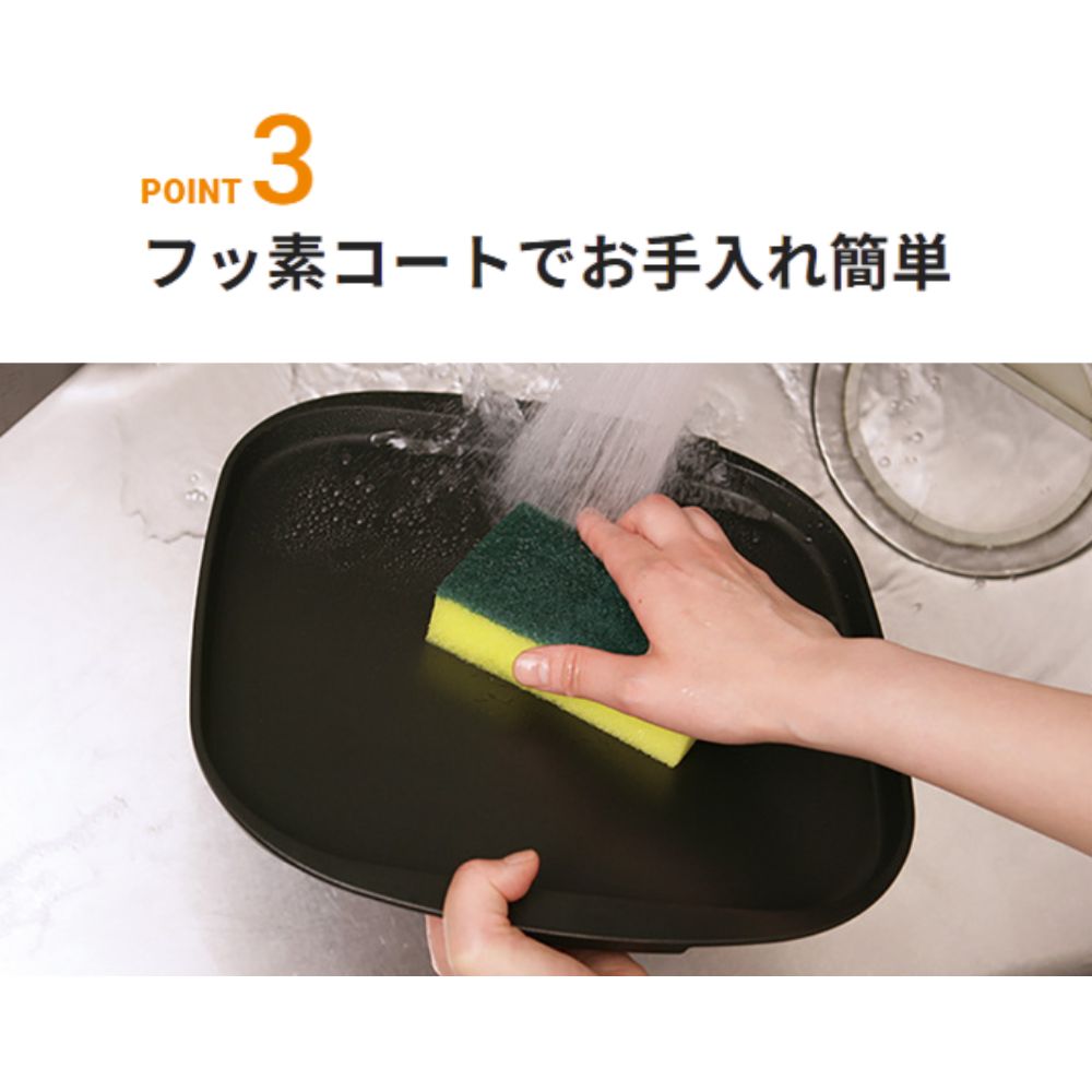 ★ 焼面がフッ素樹脂加工を施し、焦げ付き・こびりつきが少なく、お手入れも簡単!
