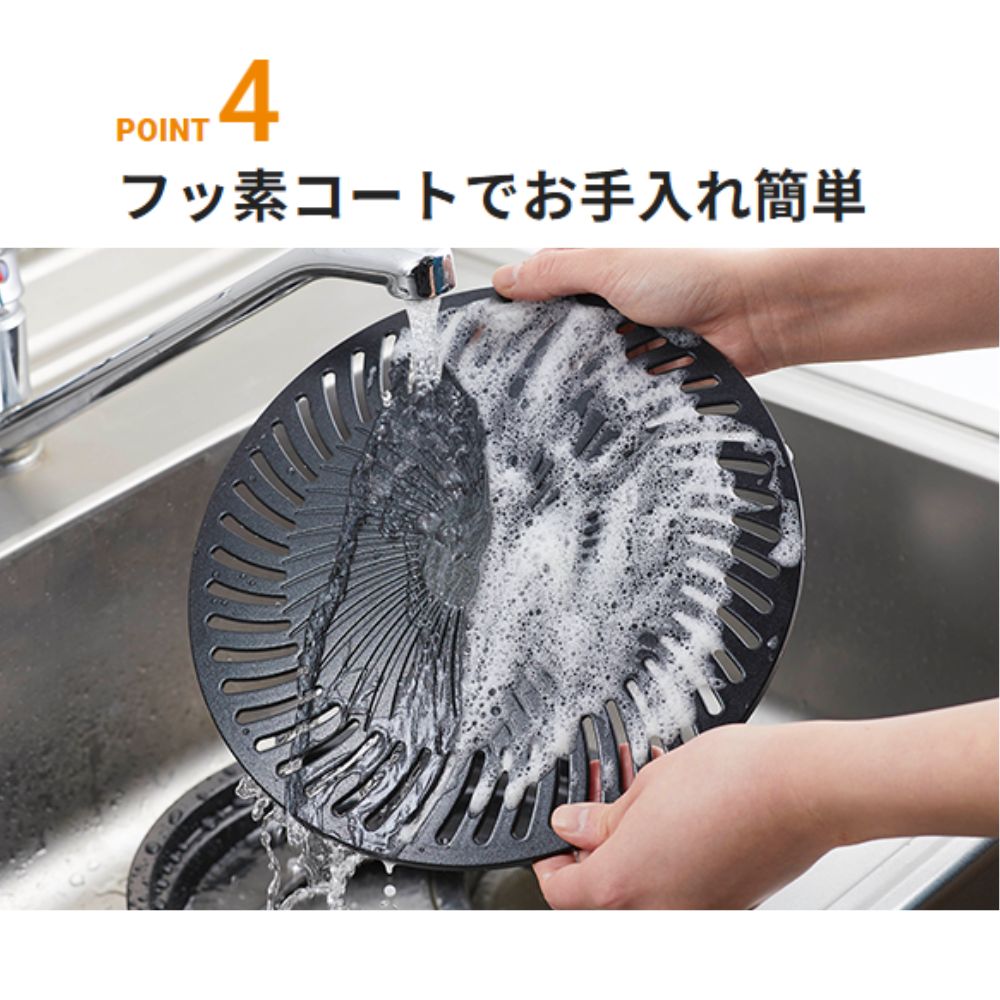 | ★ カセットこんろで使う専用「焼肉プレート(L)」 焼肉プレート(S)よりも焼面積が1.8倍!ファミリーでの使用に最適。 ★ お肉の余分な脂を水皿に落とす構造でヘルシーです! プレートにはフッ素樹脂加工を施し、焦げ付き・こびりつきが少なく、お手入れも簡単! ★ 便利なプレート用取っ手付き。 ★ 水受皿底部のくぼみが、ごとくにはまる安全設計。 ★ 本品はイワタニカセットフー専用です。 ※一部適合しない機種がございます。 ※Jrシリーズに は使用は出来ません 【使用できるカセットコンロ】 カセットフーシリーズ:CB-SL-1 達人スリムシリーズ: CB-AS-1 / TS-1 / TAS-1 / SS-1 / SS-50 / TS-PLS / BS-1 / TS-5 エコシリーズ: CB-ECO-1 / ECO-2 / ECO-NA / ECO-SLIM / ECO-SL2 / EPR-1 / ECO-PRW / EPR-2 / EPR-3 BO(ボー): CB-AH-35 / AH-41 / AH-41F / AH-41N / AH-41R 極:CB-EX-2025 雅SLIM:CB-WA-64 雅:CB-WA-35 / WA-35F かぐら KAGURA:CB-MK-36 アモルフォ:CB-AMO-2N / AMO-80 ASF35:CB-ASF-35 風まる:CB-KZ-1(A)/ KZ-2 / KZ-3 マーベラス:CB-MVS-1 / MVS-2 ※本体上蓋を外し、セットアダプターを用いて使用 タフまるシリーズ:CB-ODX-1 / -XG ビストロの達人プラス:CB-BST-PLS ビストロの達人III:CB-BST-3 ビストロの達人II:CB-GP-2 / GP-W、R、M フラットツイン・グリル:CB-TBG-1 ※本体の上蓋を外して使用 フラットツイン・S:CB-TBG-2 ※本体の上蓋を外して使用 グリルスター:CB-SBG-1 / SBG-2 ※本体の上蓋を外して使用 ラックスキャンプストーブ:FW-LS01 ※本体上蓋を外し、セットアダプターを用いて使用 【商品情報】 ■サイズ 本体(約):直径33.7cm×高さ5cm プレート(約):直径30.5cm ■重量:約840g ■カラー:ブラック ■生産国:台湾 ■付属品:補助取っ手 ■材質 受け皿:スチール(フッ素コーティング) プレート:アルミダイカスト(フッ素コーティング) 取っ手:スチール(電着塗装) 【使用上の注意】 水受皿に約260ccの水をご使用ください。 空焚きは絶対にしないでください。 テント内や車内では絶対に使用しないでください。 フッ素樹脂加工が傷つくため、金属製の調理器具は使わないでください。 ※パッケージ裏面にその他注意事項記載しております。 |