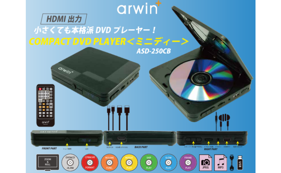 dvdプレーヤー hdmi テレビ 接続 hdmi出力端子付き 多機能 簡単操作 USBメモリ HDMI搭載 CPRM 薄型 コンパクト DVD CD 再生 本体 リモコン付き
