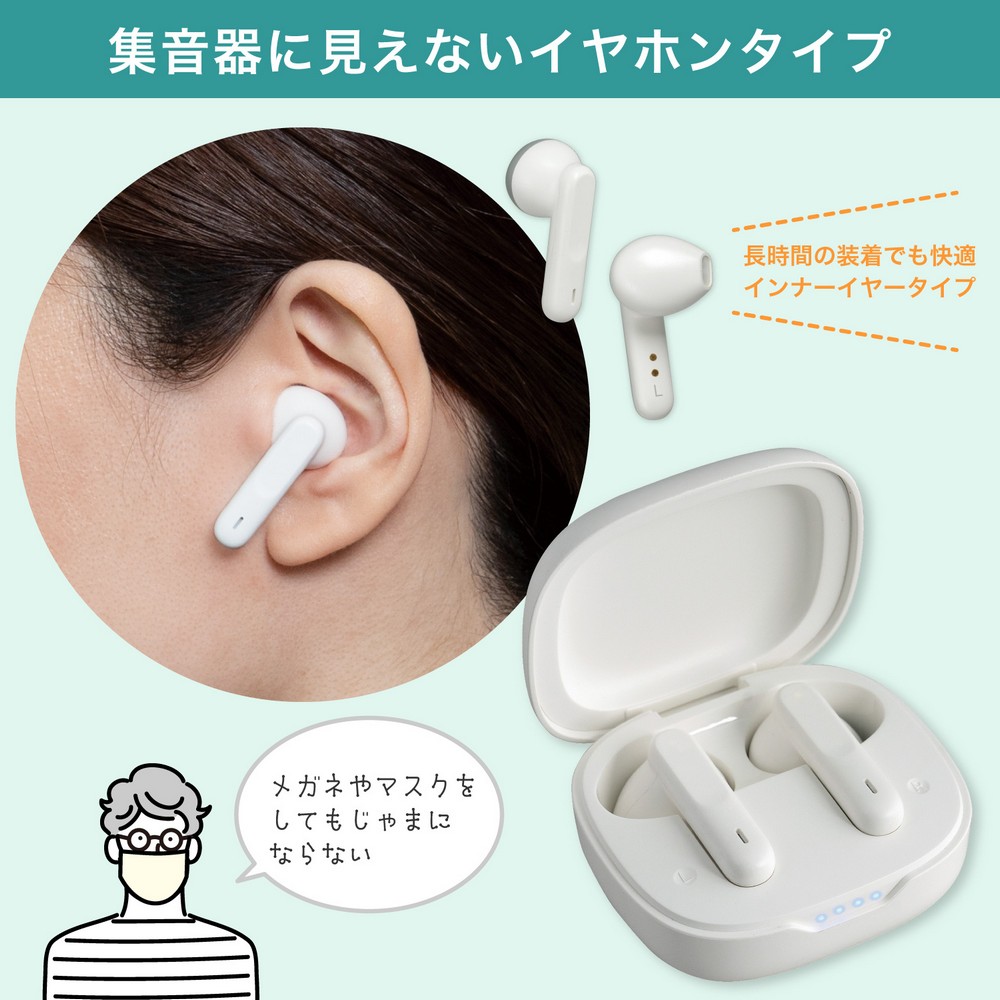 集音器 高齢者 イヤホン型 補聴器 集音器に見えない ワイヤレス インナーイヤー型 小型 軽量 充電式 Bluetooth 両耳 5段階音量 抑制 超軽量