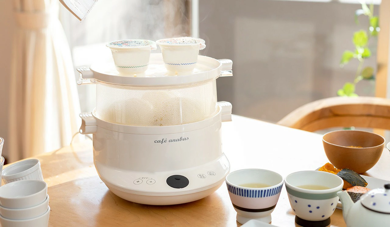 【スチーム名人×かんたん蒸し器(L)】 家族分をまとめて調理できる、たっぷり容量の電気蒸し器です。 1段・2段の使い分けができ、調理内容に合わせて柔軟に対応します。