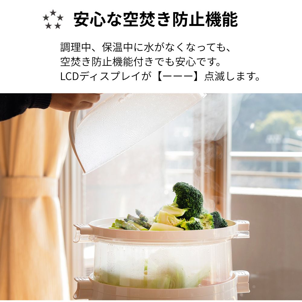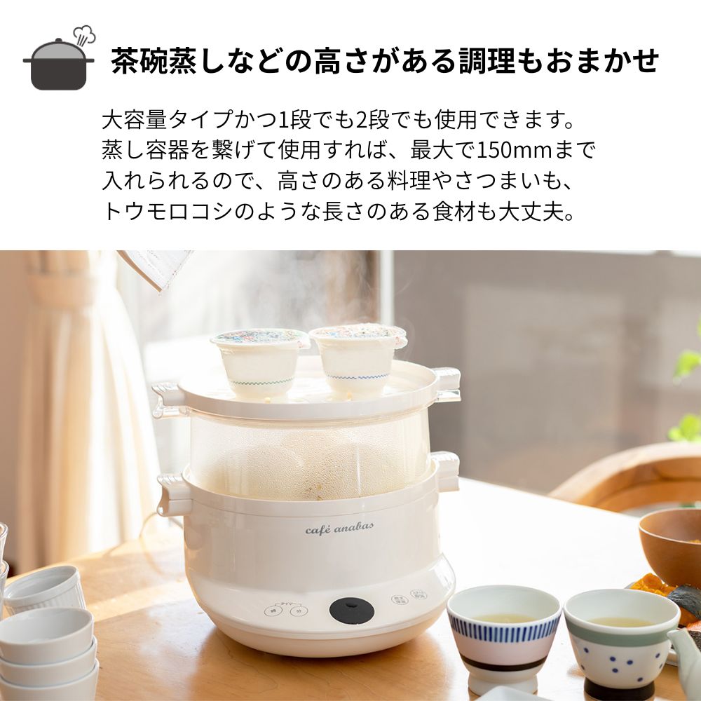 蒸し器 スチーム 2段 保温 大容量 デジタル 電気蒸し器 スチームクッカー タイマー付き 空焚き防止 かんたん蒸し器 スチーム名人 ゆで卵 ANABAS SE-003