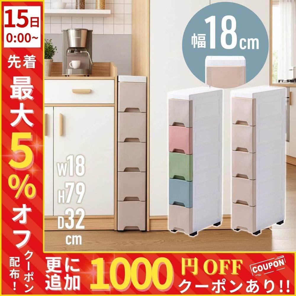 隙間収納 幅18cm スリムラック 5段 スキマ収納 収納ケース 隙間収納 洗面所 キッチン 引き出し キャスター付き 18cm スリムストッカー すきまストッカー