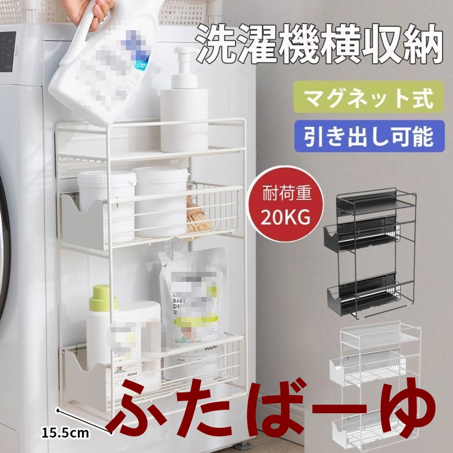 洗濯機横マグネット収納ラック 引き出し 洗濯機 ラック 3段式 収納 マグネット スリム ランドリー 洗濯機横 ランドリー収納 洗面所 すき間収納 隙間収納 15.5cm