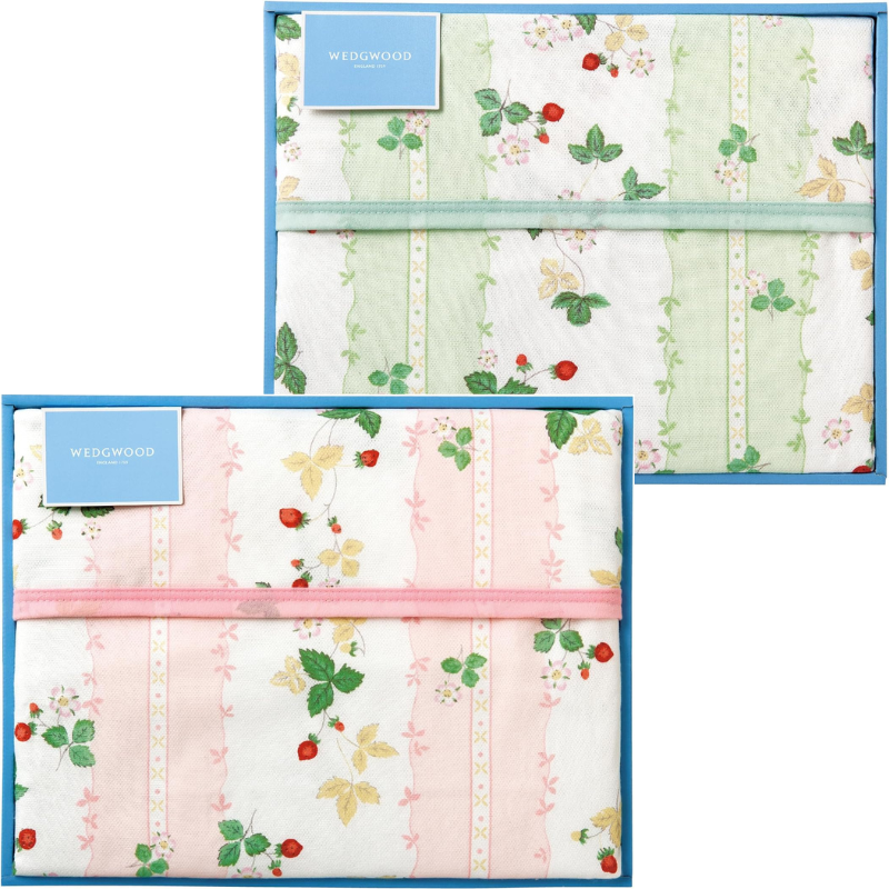 訳あり 西川 ウェッジウッド 綿毛布 コットン 綿100% 140×200cm 箱くずれ 箱入り(WW8610) FQ82601011 ピンク・グリーン