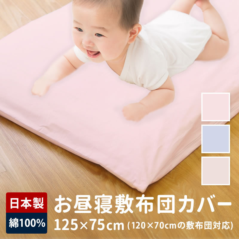 お昼寝布団 敷布団カバー 75×125cm 日本製 お昼寝 綿100% 綿 ベビー キッズ 子供 赤ちゃん お昼寝マット ベビー布団 ファスナータイプ YKK (無地カラー)