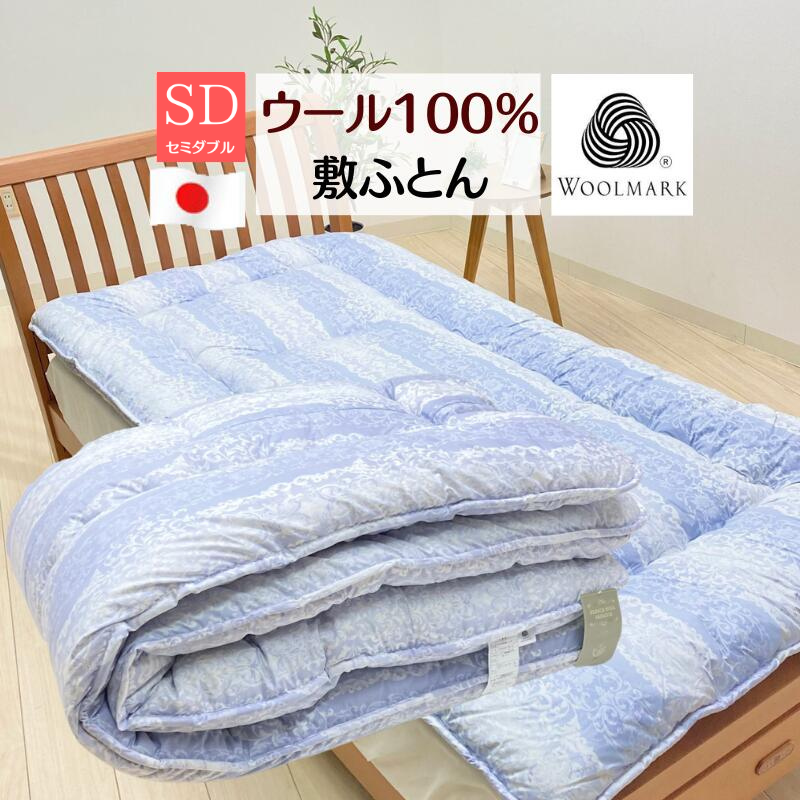 敷き布団 セミダブル フランスウール100% 羊毛敷布団 敷きふとん ウールマーク付 3.6kg(568)レギュラータイプ