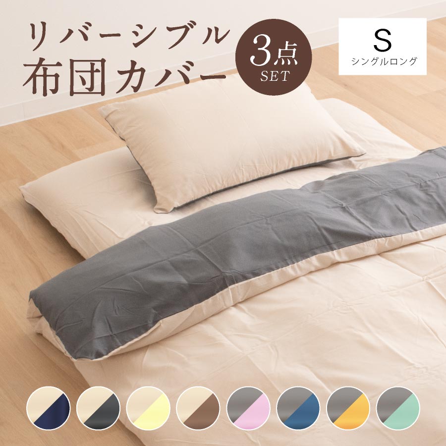 布団カバー3点セット シングル ロング 布団カバーセット 3点リバーシブル 無地カラー バイカラー 布団カバー セットカバー シングル