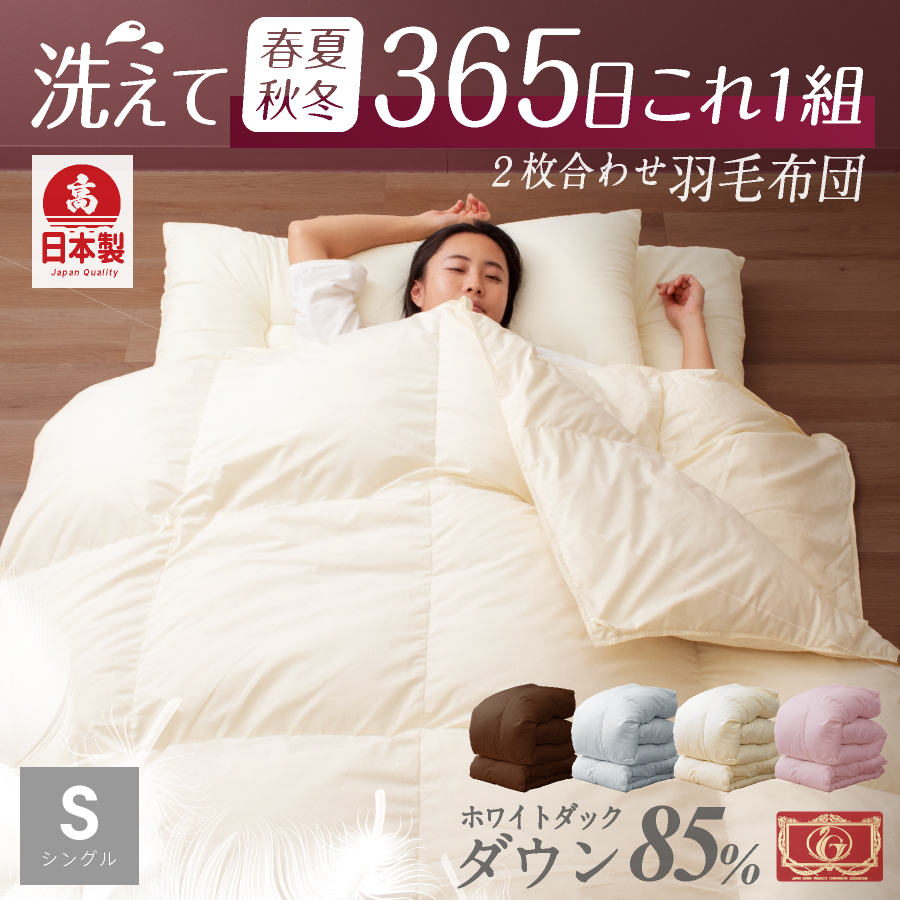 日本製 二枚合わせ 羽毛布団 シングル レギュラー 洗える 2枚合わせ 羽毛掛け布団 シングルロング 春 夏 秋 冬 全季節 年中使える オールシーズン 丸洗い 国産