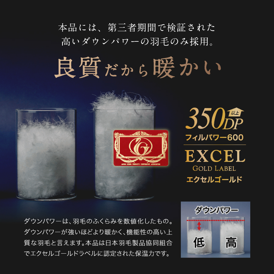 詰め物:羽毛(ダウン85%/フェザー15%)