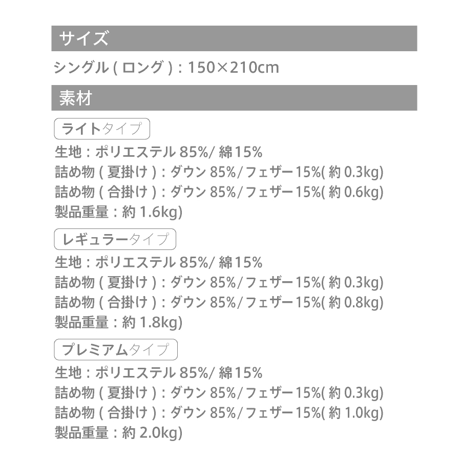 ( レギュラー:夏掛け/約0.3kg 合掛け/約0.8kg )