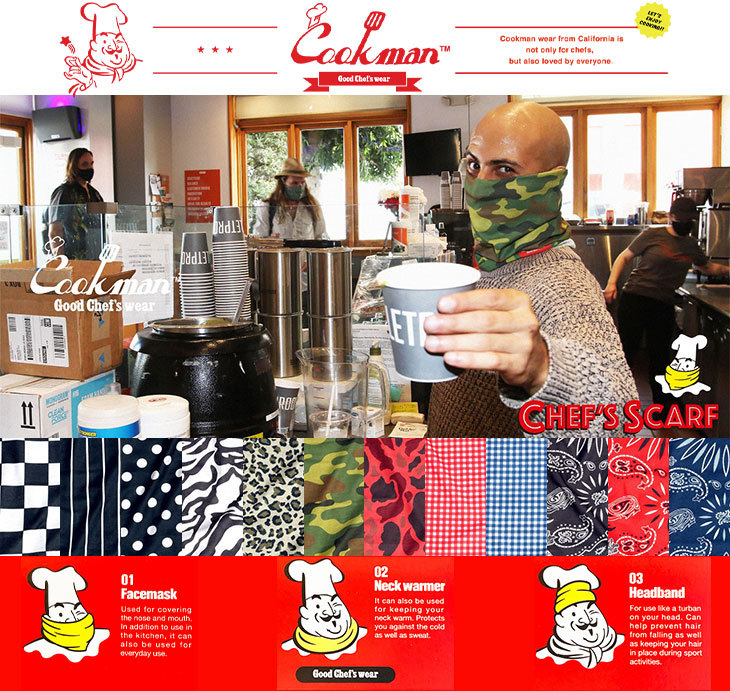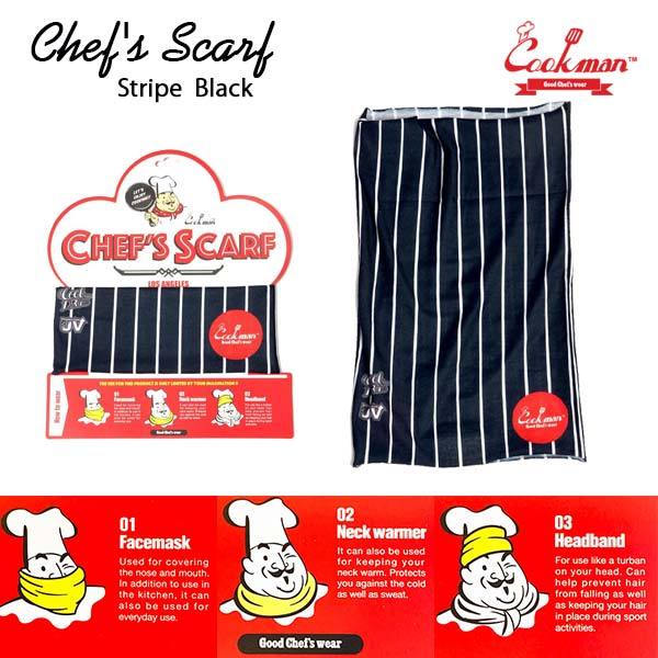 Chef's Scarf Stripe Black シェフスカーフ ストライプブラック ヘッドバンド フェイスガード ネックウォーマー 3way UVカット COOKMAN