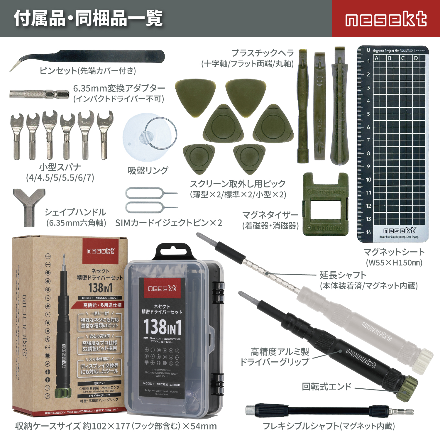 [ネセクト] 精密ドライバーセット アルミグリップハンドル仕様 高強度S2素材ビット [日本国内企画品 1年保証]