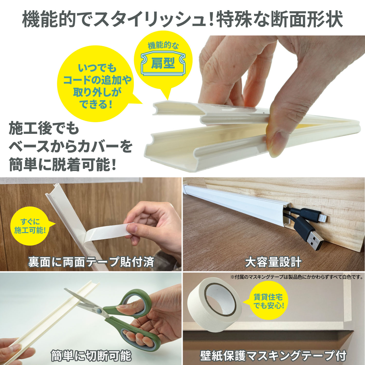 壁を傷めず配線をカバーできるため、賃貸住宅での使用も安心です。