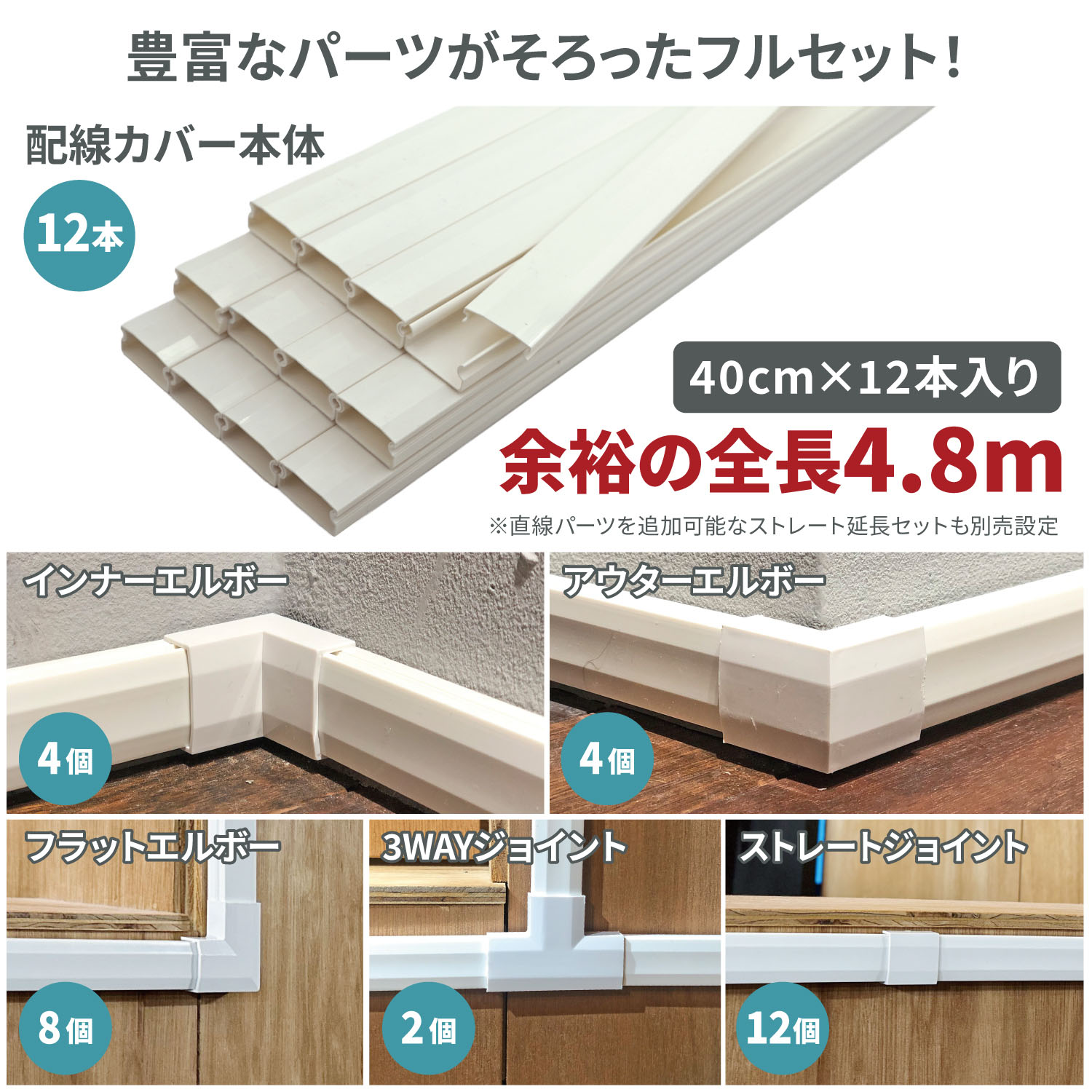 【セット内容・サイズ】配線カバー(両面テープ付き)12本、コネクタパーツ20個、マスキングテープ1個。