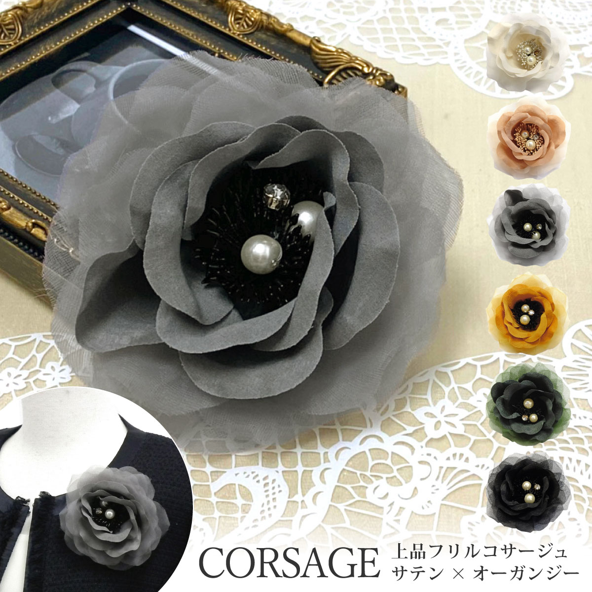 コサージュ サテン×オーガンジー パール&ラインストーン 9a フォーマル レディース 卒業式 入学式 結婚式 お洒落 爆買