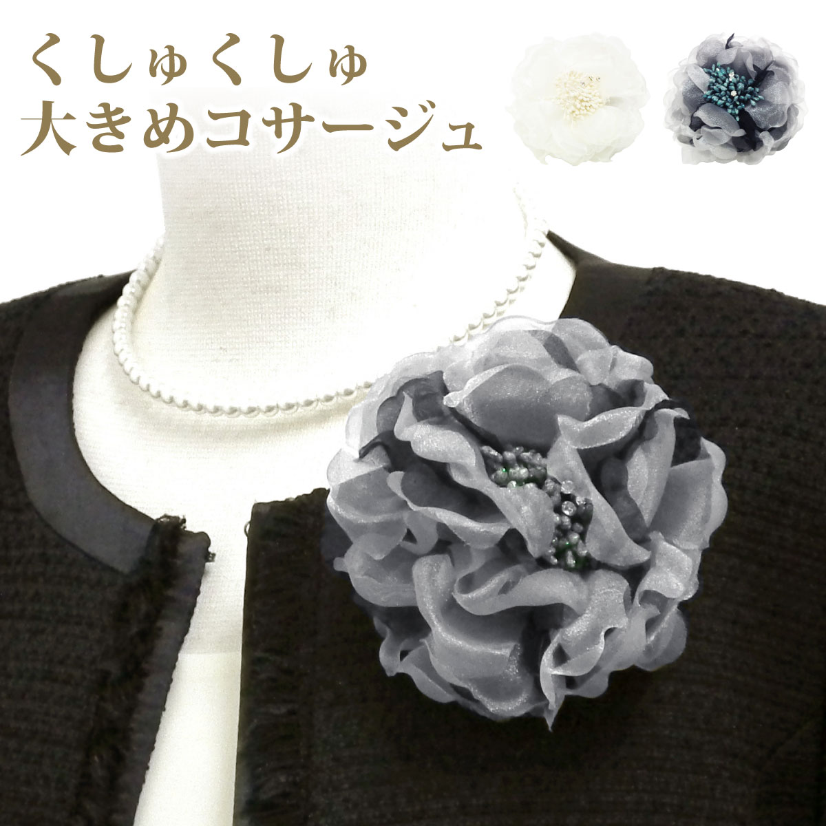 コサージュ 大きめ 11cm 透け感がキレイ くしゅくしゅ オーガンジー ボリューム感 ラメ花芯&ラインストーン 9d レディース フォーマル 結婚式 お洒落 爆買