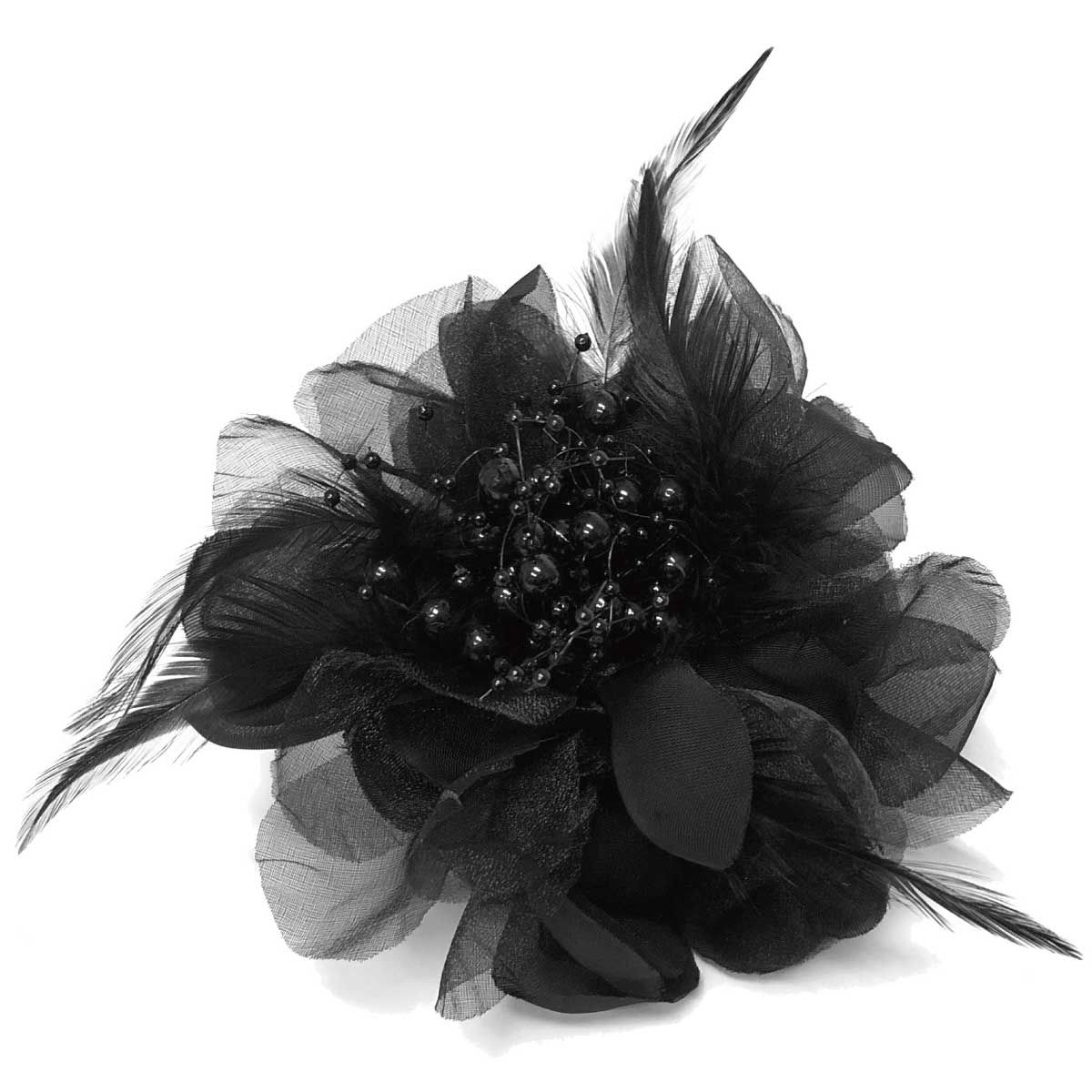 華やかコサージュ 大きめ オーガンジー 羽根飾り ブラック 9e-07 レディース 卒業式 入学式 結婚式 お洒落 爆買