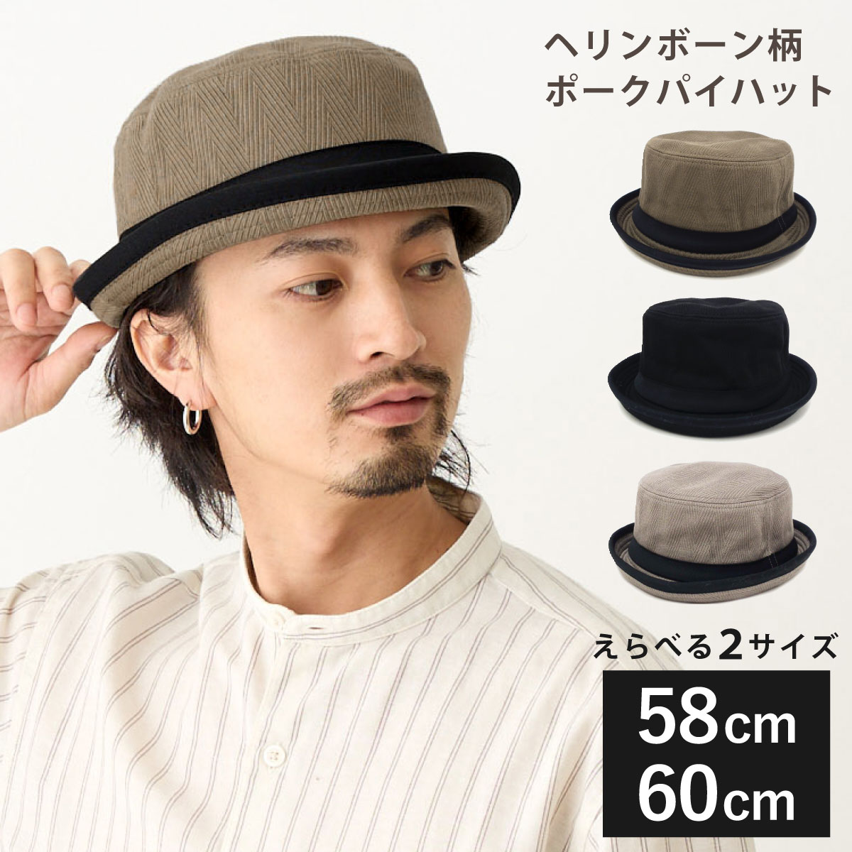 ポークパイハット 帽子 メンズ 綿 ヘリンボーン柄 コットン 60cm 58cm 無地 hat-1281 大きい バケハ 秋冬 帽子 シンプル たためる 男女兼用 爆買