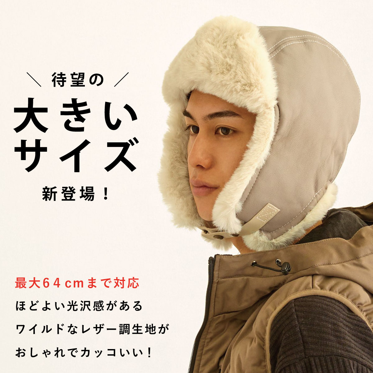 防寒 耳あて 帽子 レザー調 フライトキャップ 大きい 63cm 2WAY 風を通さない メンズ 冬 フェイクファー hat-1556 パイロットキャップ 耳カバー 爆買