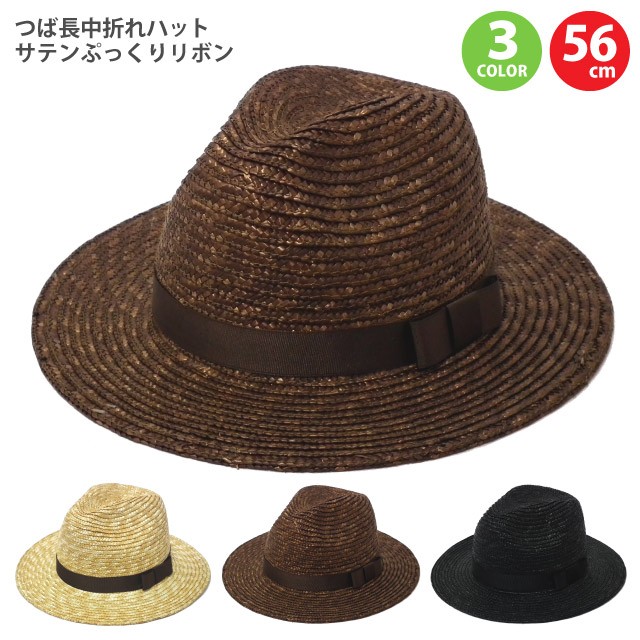 麦わら帽子 帽子 つば長 サテンリボン メンズ レディース 春夏 中折れハット マニッシュ 56cm 小さいサイズ hat-937 小さめ 帽子 爆買