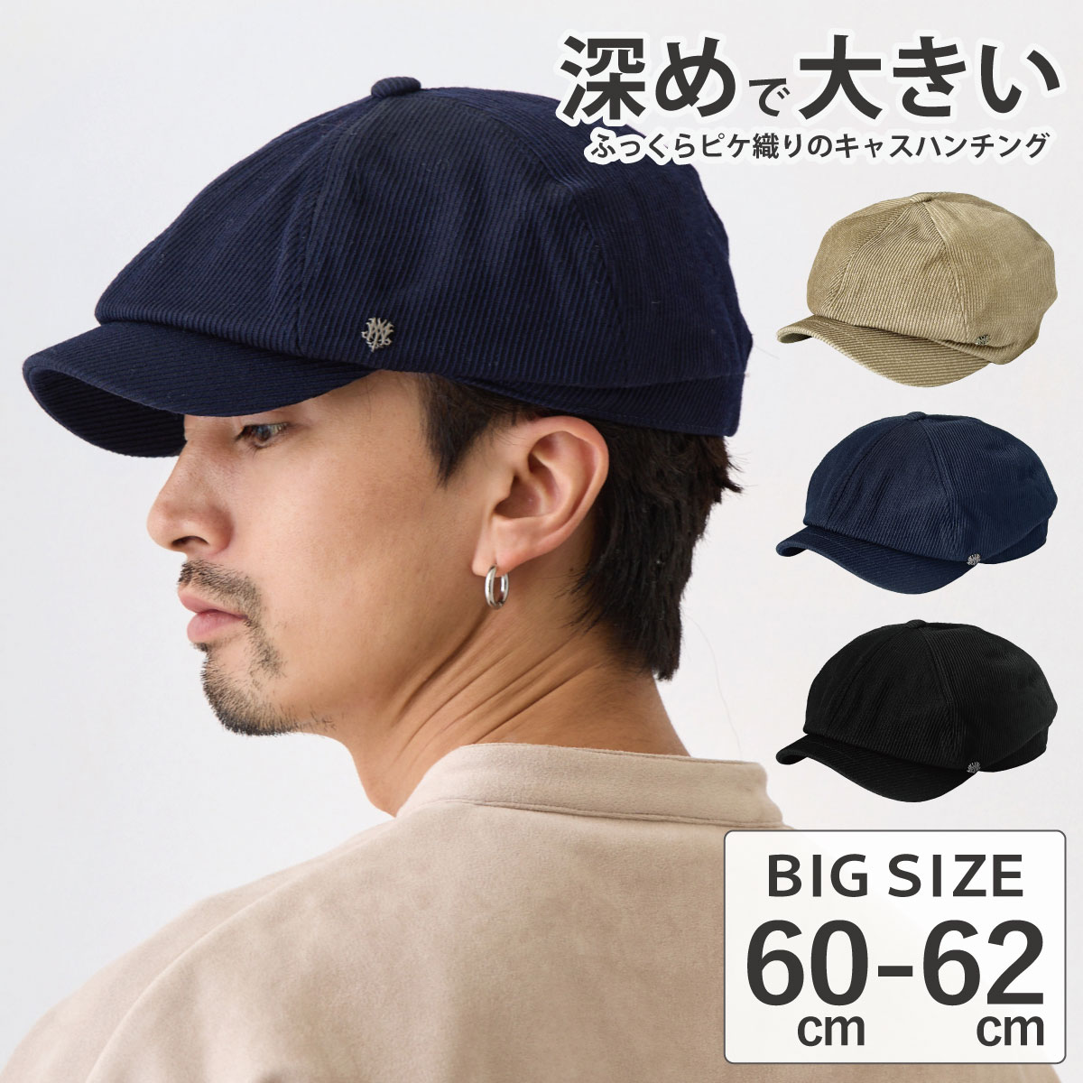 品名 | キャスハンチング 大きいサイズ ふっくらキャスハンチング 帽子 コーデュロイ素材 MQUM 秋冬 | |