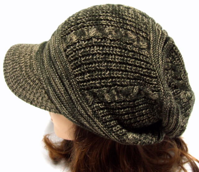 ニットキャスケット すっぴん帽子 秋冬 つば付 ニット帽 たて編み模様 カーキ&ベージュ knit-863-03 爆買