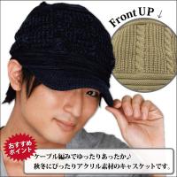たて編みケーブルデザインのニットキャスケットです。男女兼用で着用できます。