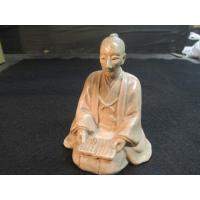 ここで紹介した商品は萩焼の名門坂高麗左衛門が作った幕末の学者として多くの明治維新の志士たちを教え導いた吉田松陰の座像です。中でも十一代の高麗左衛門は特に人物の表現や表情を巧みに作り出した作家として知られています。作り出された作品の表情やそこに醸し出される雰囲気は作られた人物の内面をも表現しているようです。この吉田松陰坐像でも松陰の落ち着いた人間性や性格の厳しさが伺える出来となっています。傷や汚れがあります。サイズ:9cmx10cmx12cm