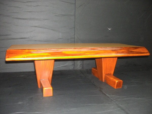 吉野杉を使って飾り台を作りました。この度は今までのような普通の足ではなく逆四角錐の足にしてみました。少し奇抜なデザインですがフンイキのある面白い飾り台になりました。ポリウレタンのクリアで仕上げました。材料:吉野杉仕上げ:ポリウレタンクリア仕上げサイズ:75cmx38cmx22cm 「木匠」 溝端 隆 作