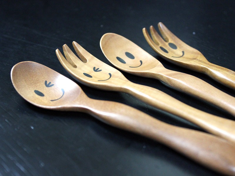 子供用 スプーン フォーク ウインク スマイル 天然木製 和食器 ニコニコ