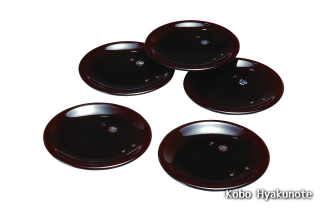 5.0銘々皿 溜 貝貼梅(5枚入)