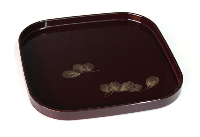 24cmくつわ型盆 溜塗 沈金風松 盆返し 初盆 盆 和食器