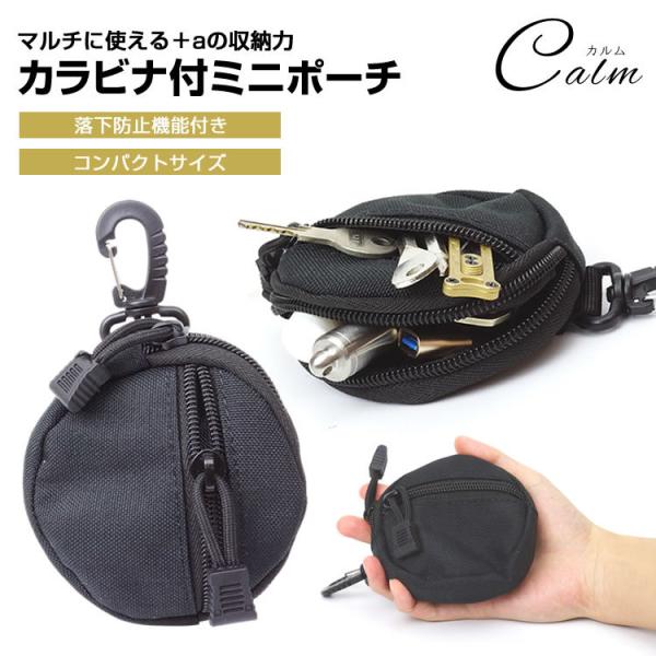 ベルトポーチ メンズ カラビナ付 ミニポーチ アウトドア 小さめ キャンプ ハイキング ジッパータブ マルチポーチ サイクリング 便利 収納 小物