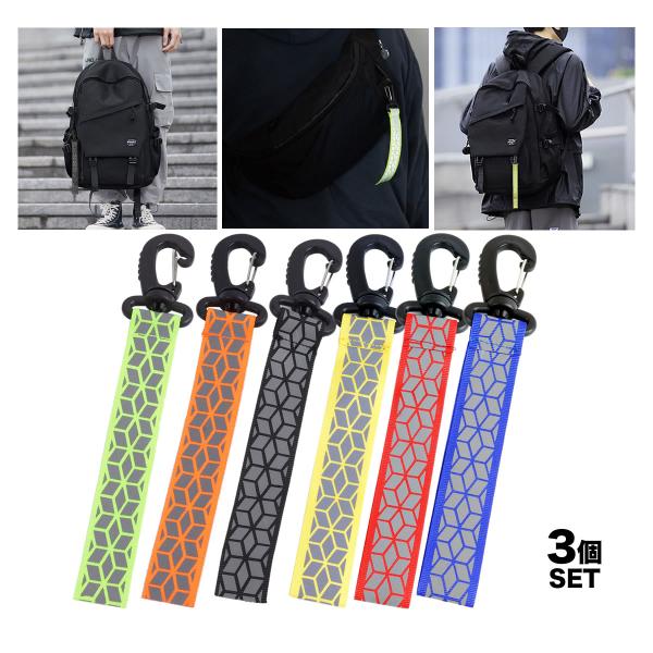カラビナ 反射 ストラップ 3個セット リフレクター キーホルダー 交通安全 夜間反射 反射ストラップ バッグチャーム アクセサリー 通勤 通学 通園 ランニング