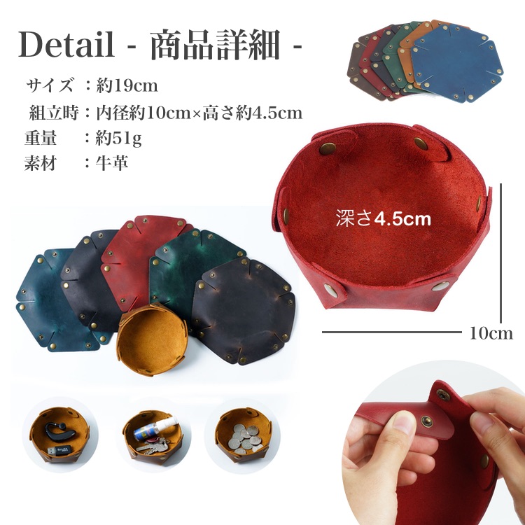 レザートレイ 本革 組み立て 小物入れ トレー 牛革 薄型 おしゃれ 高級感 軽量 コンパクト メンズ ウィメンズ