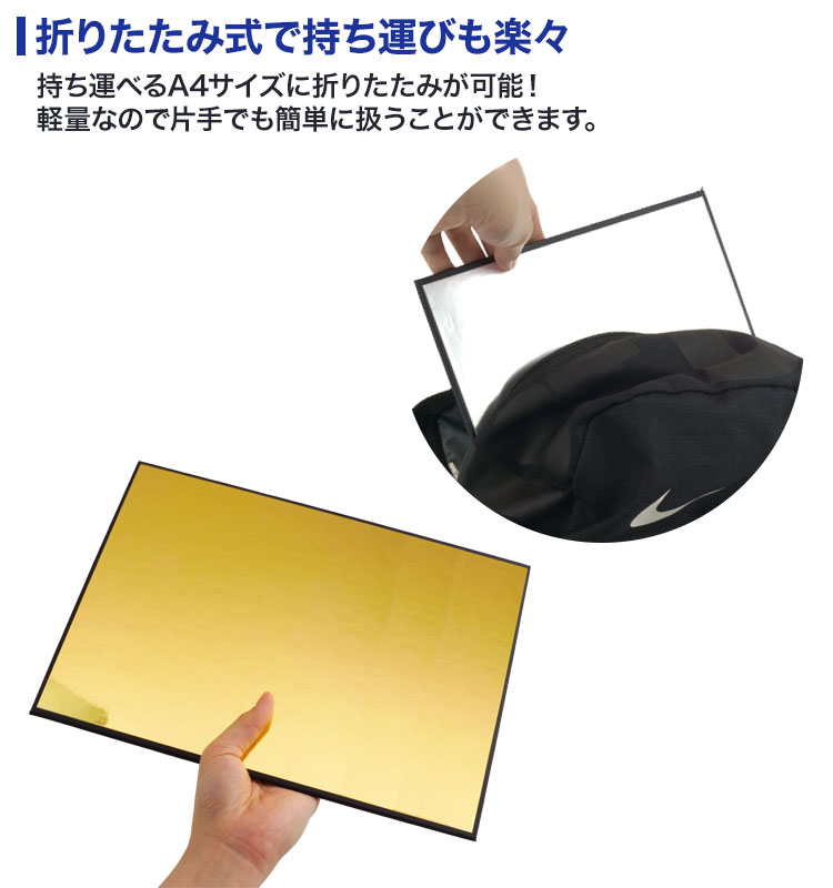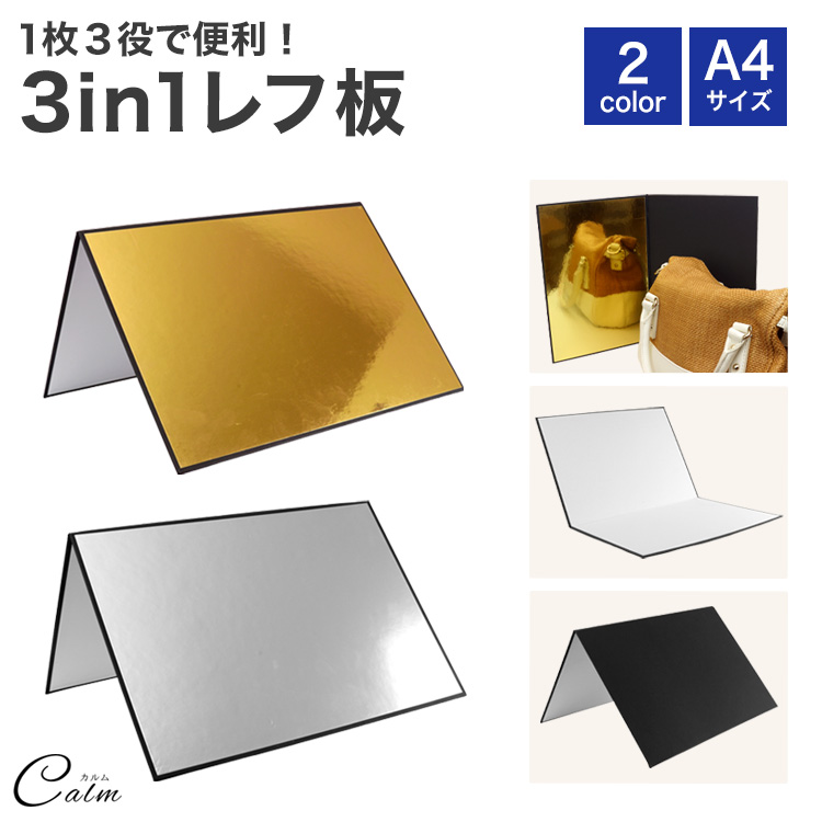反射板 商品撮影 コンパクト 折りたたみ A4 撮影用 ライティング道具 レフ板 3in1 輪郭強調 補光 吸光 ライト 白 黒 銀 金 ホワイト ブラック シルバー ゴールド