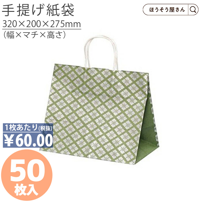 ポイント5倍とクーポン 自動手提袋 HV68 平安グリーン 50枚日本製 高品質 紙袋 ギフト プレゼント イベント 入学 新学期 新シ