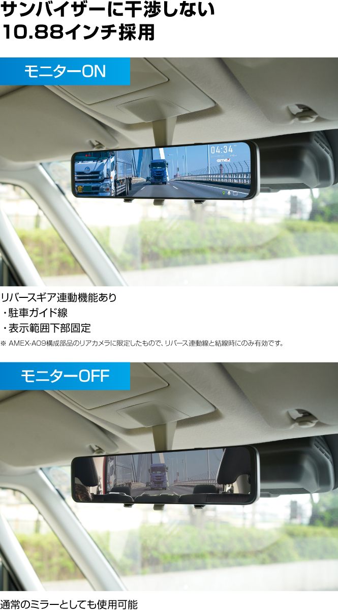 走行時画素 / センサー(リア):200万画素、1/2.8 CMOSセンサー、STARVIS技術搭載