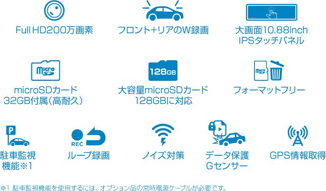 駐車録画:〇(オプション機能)