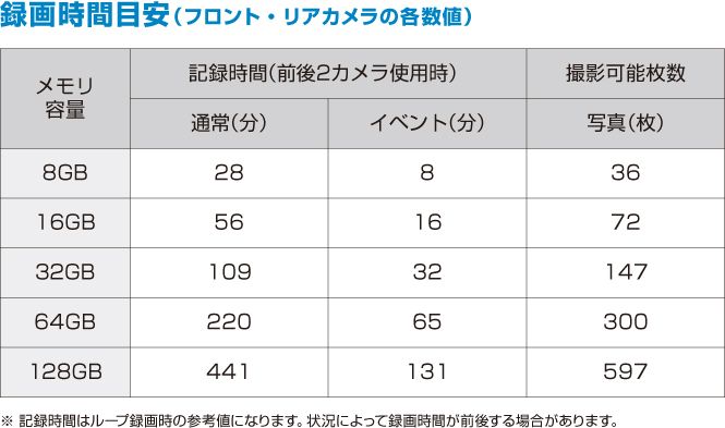 付属メモリー / 対応メモリー:microSDカード32GB、最大128GB(Class10以上)