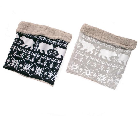 昨年大ブレークしたネックロールカバーが今年も再登場です。 この筒状のロールを被るだけで温かさは全然違ってきます。首回り顔回りが暖かいだけで体感温度に大きな差が出ます。 裏ボア製のこのロールを被るだけで首回り顔回りがぬくぬくホカホカ。 ロールのへりに柔らかなワイヤーを入れているのがこの商品のミソ。 ワイヤーが有ることで色んな形にロールを変化させ、5通りにも使える優れもの。 マフラーとしてフードとして耳当てとしてフルフェイスとして使えます。 被りものですので、マフラーのようにほどけたり落としたりしないのが嬉しい。 寒い地方の方は、フルフェイスになりとっても暖かと好評を頂いております。 裏総ボアの暖か仕上げです。 軽くて暖かくて手洗いが出来て、ご用途もいっぱいで持ち運びも便利な優れものです。。 サイズ30cmx33cm 手洗い可 表裏ともポリエステル100%。 当店一押しの逸品です。 出産祝いやギフトには、とっても重宝と好評をいただいております。 |