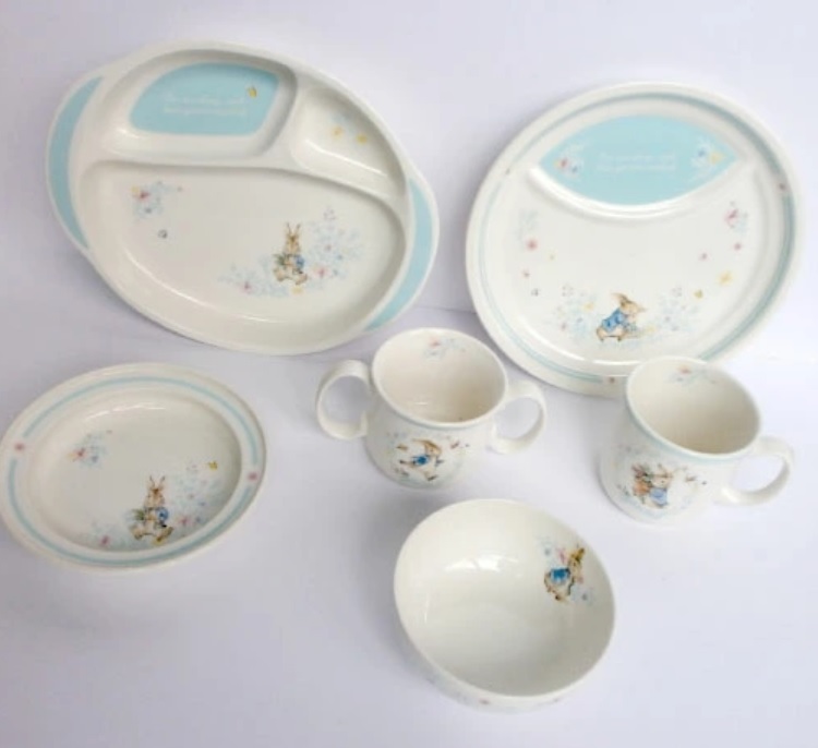 上品で可愛くて高級感のあるピーターラビットは広く世界で愛され続けているブランドです。 その人気のピーターラビットの食器セットが新発売されました。 なんと磁器製の本格的な食器セットでの登場です。手にしただけですぐわかるその高級感。 多くのポリプロピレン系の食器セットと違い、磁器は本格的食器の風合いが体験できます。 色合いも淡いブルーで柄も優しいピーターラビット柄でとっても上品で高級感のある仕上がりとなっています。 小さな時から本物に触れておくのは大切なことですね。 アイテムはお食事プレート24cmx19cm お皿21cm直径 小皿14cm直径 マグカップ8cm直径 両手マグ7.5cm直径 お茶碗11cm直径の6点セットです。 色んな使い方が出来る便利なアイテムばかりで揃えました。 6点も磁器の食器が並ぶと本当に豪華な感じになります。。 ピーターラビットの素朴で上品でな夢のあるギフトをお楽しみください。 上品なピーターラビットブルーのお箱に入っていますので出産祝いやお誕生日プレゼント、 ギフトにと好評です。 一格うえの高級ギフトセット。 磁器製の食器セットですので差し上げ物に好評です。 磁器製なので変色せずそのままの状態で長持ち致します。 お子様が将来に自分のお子様にも思い出の品として渡せます 電子レンジでの温め可 食洗器可 日本製 |