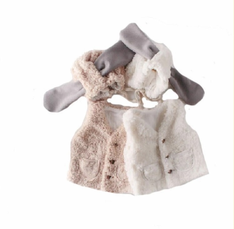 | (特徴など) | ボア製ベビーベスト お揃いの帽子付き 軽くて暖か。 寒い時の温度調整に最適 手洗い可 |