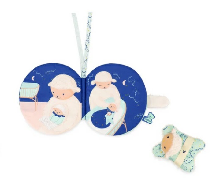 布絵本とハンドパペットのギフトセットができました。 ママの優しい声でお話を読んであげて、ハンドパペットで遊んであげれば、 赤ちゃんはは安心感と癒しを感じています。 お眠みの時に読んであげれば優しく眠りにいざないます。 布絵本は赤ちゃんとのコミニユケーションにとっても役立ちます。 また目の前で動くハンドパペットのひつじさんを興味深々で目追いをいたします。 色も柄も上品に仕上がっている癒しの逸品です。。 化粧箱に入っていますので出産祝いやプレゼント お誕生祝に好評です。 素材=綿 ポリエステル 布絵本サイズ=15cmx3cmx17cm |