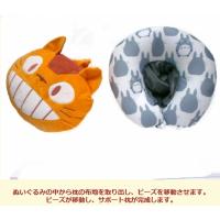 いつも変わらぬ可愛さと人気でみんなに愛されている、トトロ達のサポートピローです。 普通はぬいぐるみとして楽しめますが、ファスナーをはずし中味をひっくり返せばサポート枕に変身です 中から折りたたんである布地を引っ張り出し、ビーズを均等に入れればお子様の素敵な枕として使えます。 ドライブやお出かけの時、お子様はよく寝ちゃいますよね。そんな時便利なのがサポートピローです お子様の首に巻いてあげれば、両側から首がしっかりとホールドし安定した姿勢を作れます。 お昼寝時にも使える安心枕です。 ビーズクッションがしっかりと首をサポートしますので、首がぐらぐら不安定な状況を解消いたします。 ひとつあるととっても便利な枕です。車の中に置いておいてもいいですね。 中身は細かなビーズですのでしっかりとした仕上がりで、型崩れもしにくいです。 目元まで掛かるフードが付いていますので、落ち着いて寝ることができます。 また日よけや風よけとしても使えるのが便利です。 ぬいぐるみ時はビーズクッションやおもちゃのぬいぐるみとしても使えます。 サポートピロー時のサイズ 32cmx35cmx9cm ぬいぐるみ時のサイズ 24cmx22cmx22cm