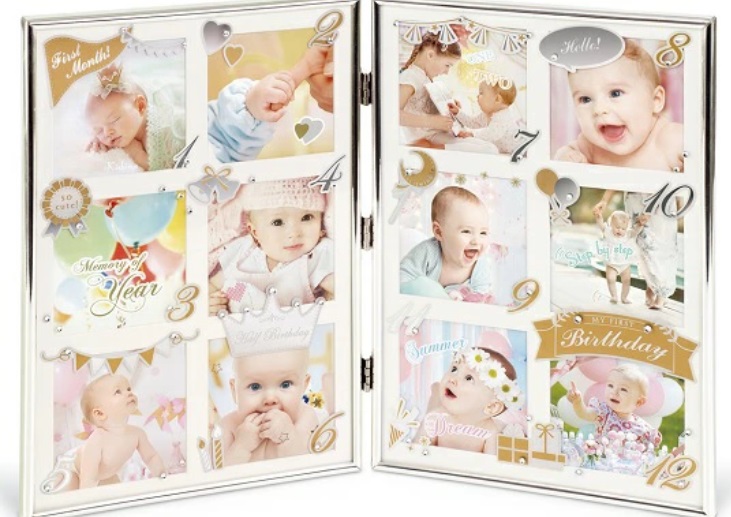 | (特徴など) | 12か月フォトフレーム 毎月1枚の写真を飾り年間の成長を残せます 世界でたった一つの宝物の出来上がりです 二つ折り型 カラス板使用 ラインストーン付き 出産祝い 贈り物 プレゼント ギフトに好評 |